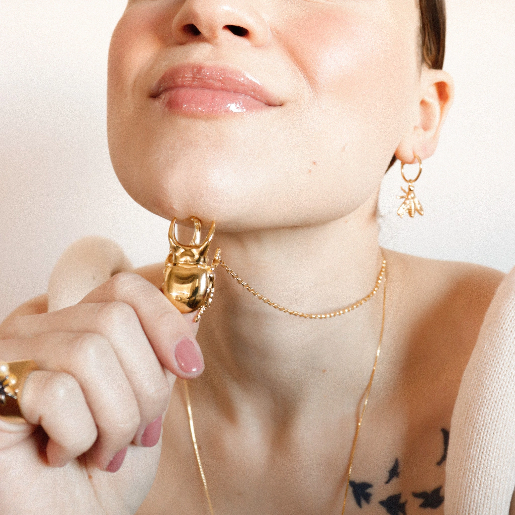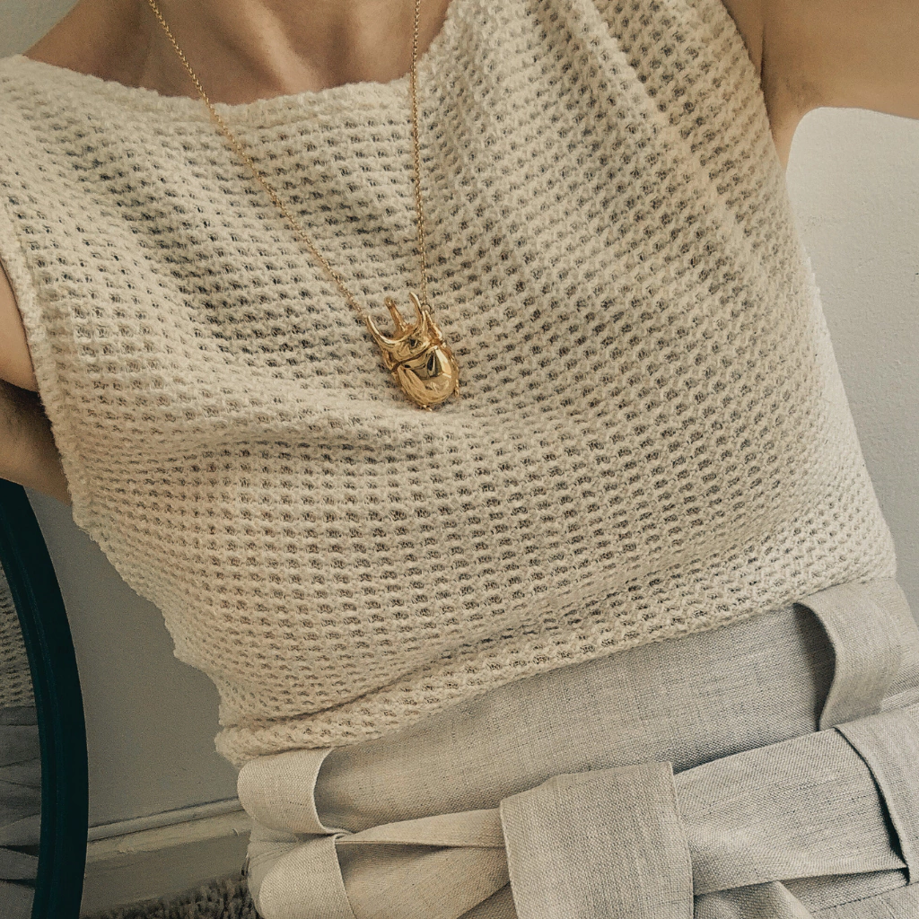 Made in raw brass with 18k gold-plated. 50 cm chain.